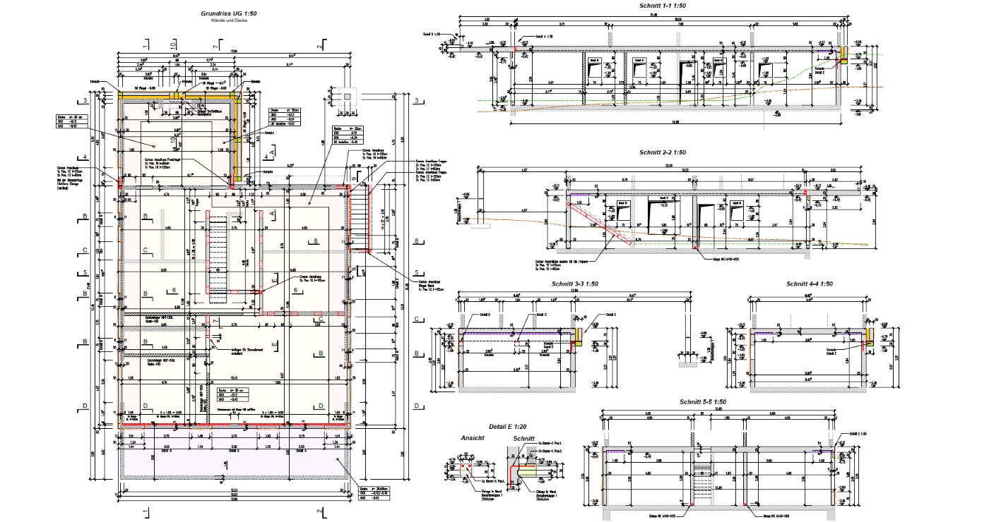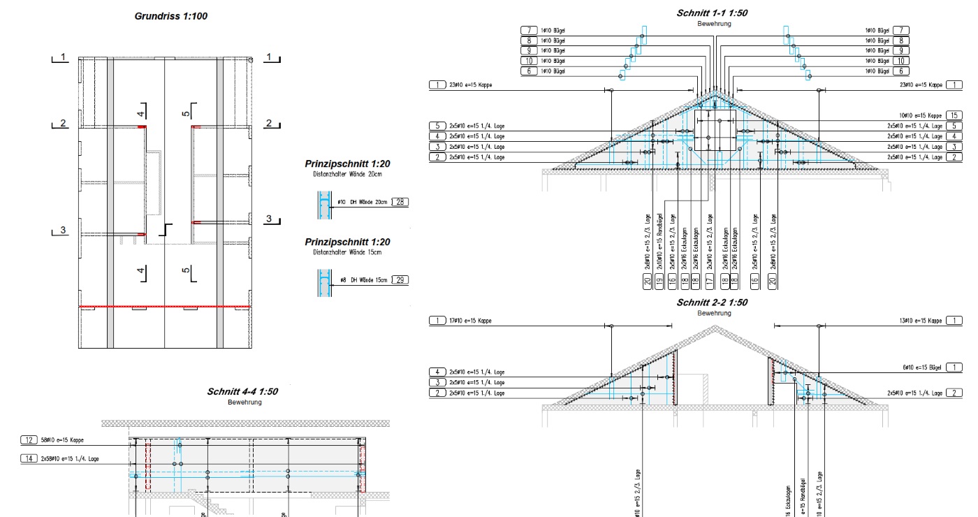 Für dieses Haus mit auskragendem Betondach haben wir sämtliche Ausführungspläne erstellt.