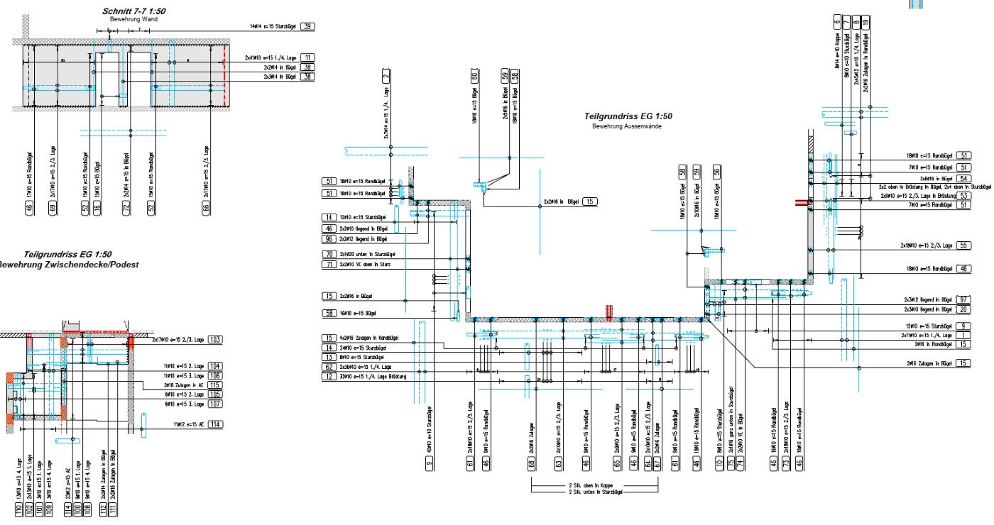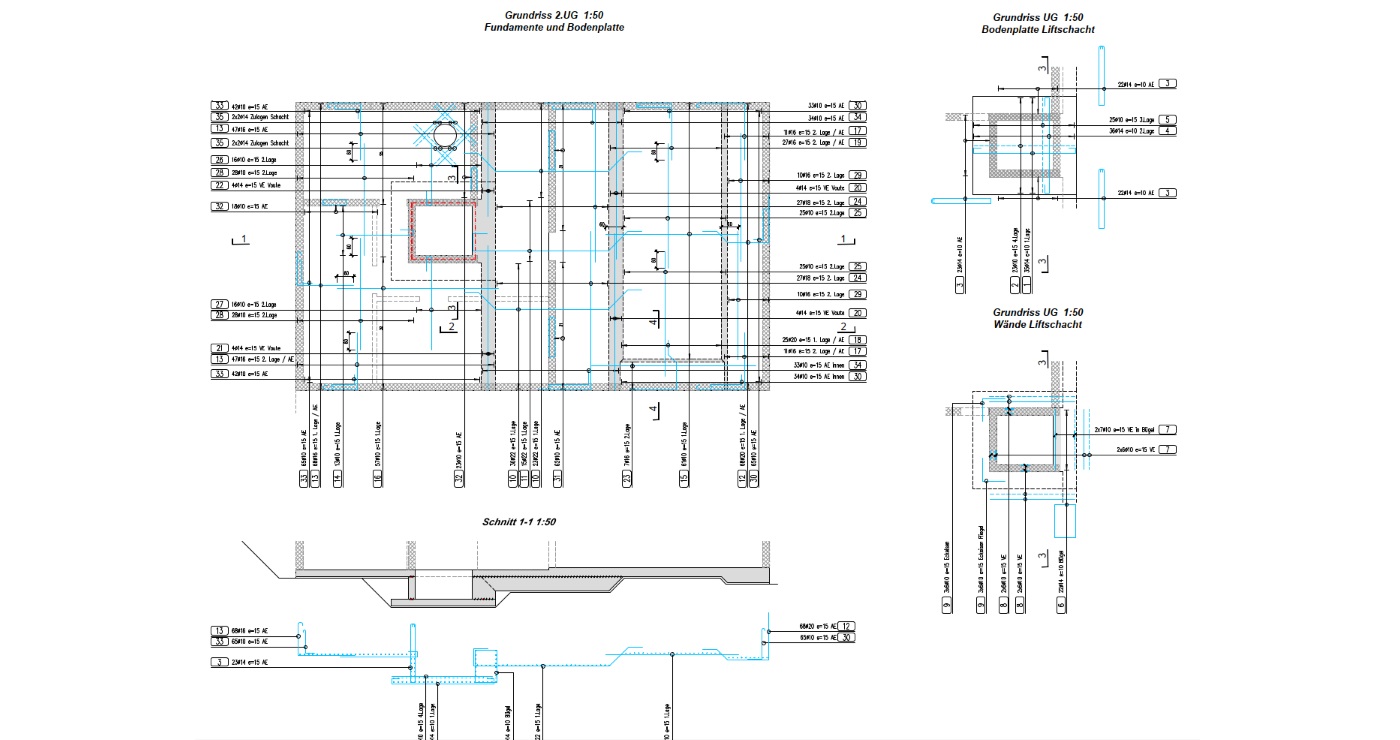 Für dieses Haus haben wir sämtliche Schalungs- und Bewehrungspläne sowie die Aushubpläne erstellt.